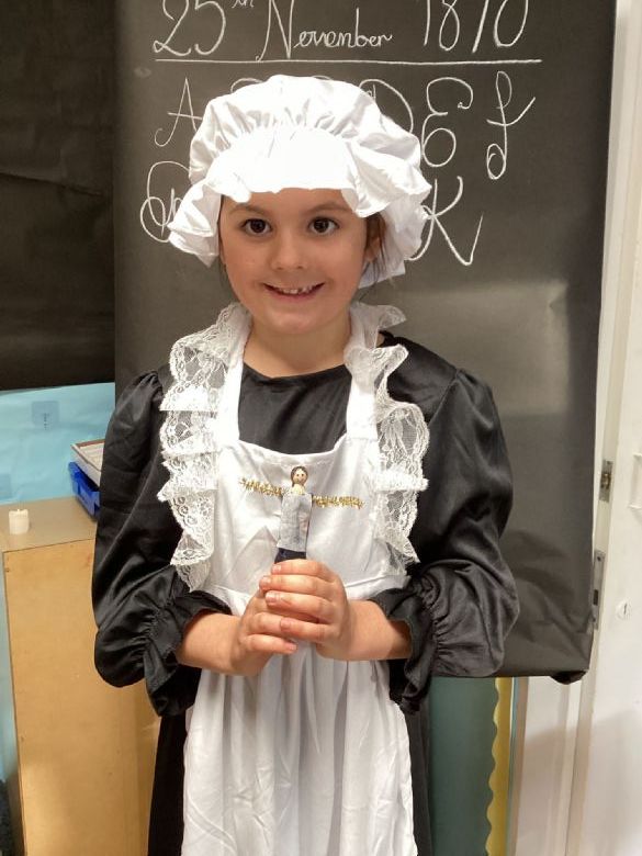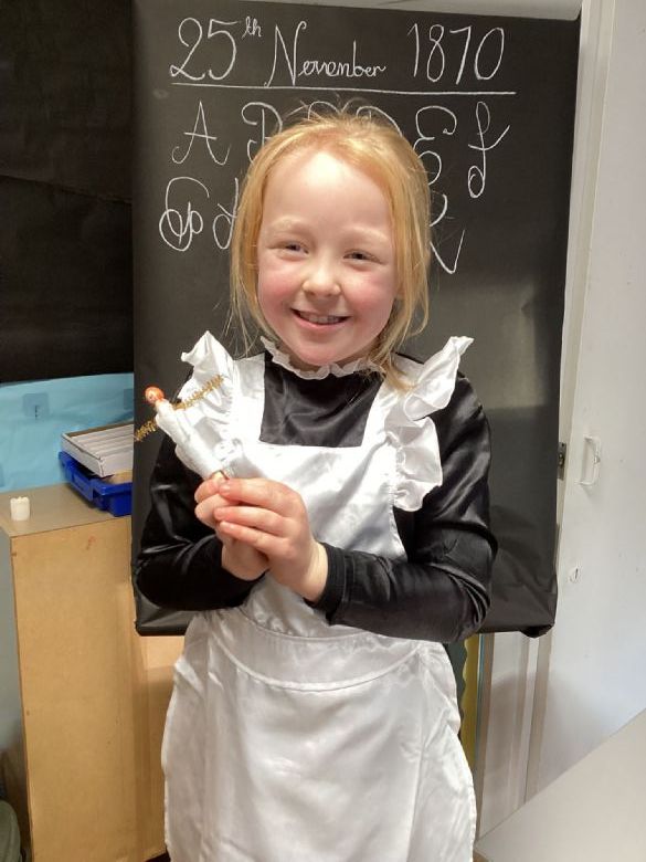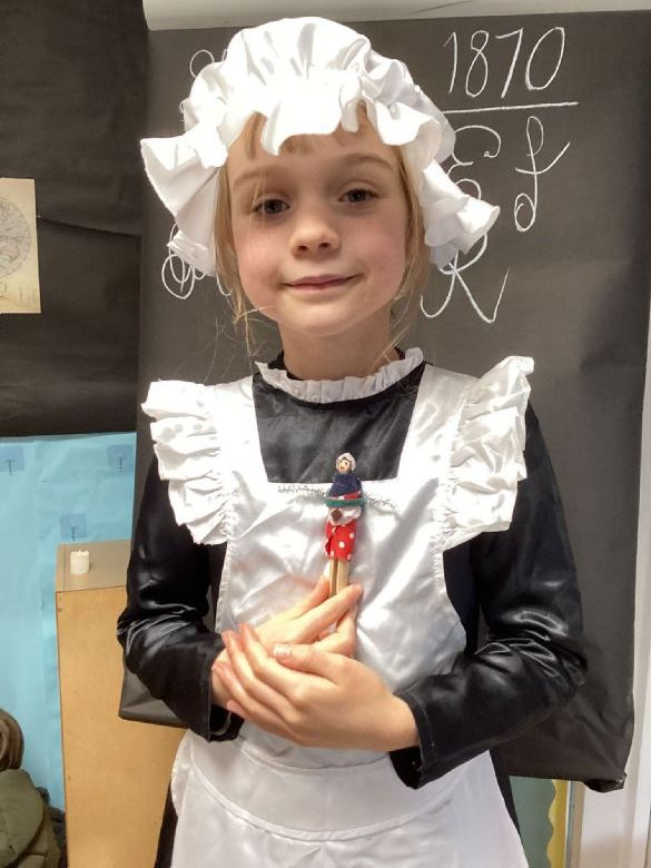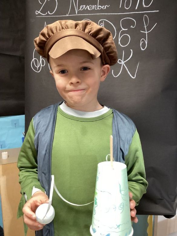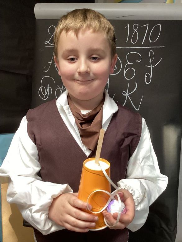 Eagles Class spent the day learning all about what a typical school day was like for a Victorian Child. They worked in cold and dark conditions, learning letters, numbers and poetry by rote and copying on slates in chalk. Children who disobeyed the rules were given the cane as punishment, and children not working hard enough or making mistakes were made to stand in the corner and wear the dunce hat. The girls sat at the back to learn skills for when they become mothers, and the boys were at the front learning the 3 R's: Reading, Writing and Arithmetic along with History, Geography and woodwork. The children participated in drills outside in line for Physical Education. In the afternoon, the children learnt all about the toys Victorian children played with, and the girls made peg dolls and the boys made a cup and ball toy.