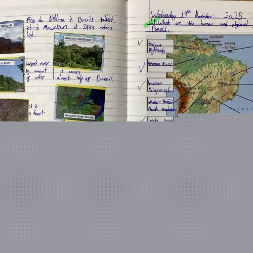 Pupils use a wide range of resources including atlases, globes, maps, digital mapping tools and fieldwork to deepen understanding. Each unit develops geographical vocabulary, locational knowledge, enquiry skills and critical thinking. Opportunities for comparison, investigation, discussion and real-world application are embedded across all year groups, with strong links to current global issues such as climate change, deforestation, sustainability and biodiversity.